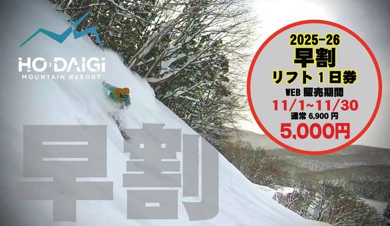 販売価格 : リフト1日券 5,000円(通常価格6、900円) ※購入希望のお客様は⇒ こちらをクリック Webでご購入いただき自動発券機(現地)での発券になります。